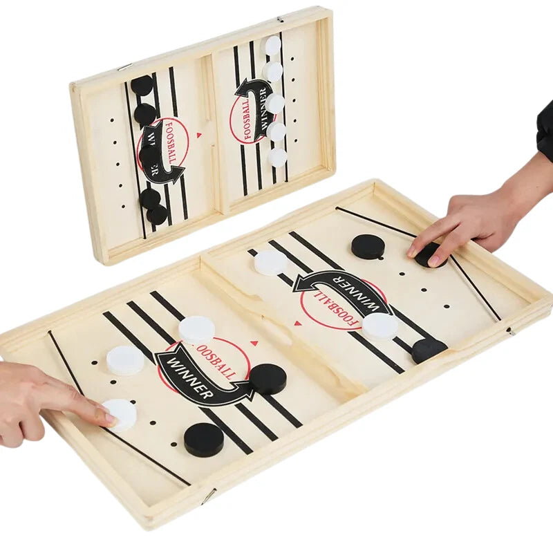Træbordhockey er et dynamisk fingerspil for to personer. Målet er enkelt – score så mange mål mod din modstander som muligt og lad dig ikke blive slået. Det handler om refleks, præcision og hurtig reaktion.