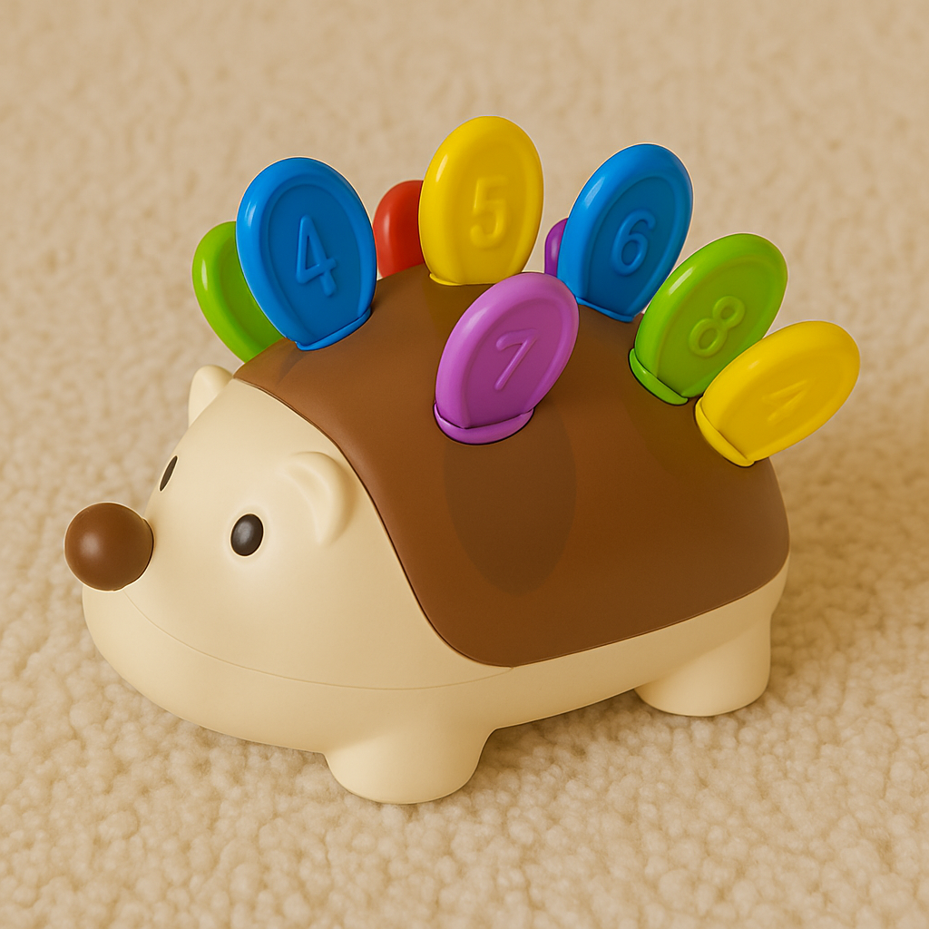 Każdy kolec ma inny kolor i cyfrę, dzięki czemu dziecko może poznawać kolory, stawiać pierwsze kroki w świecie liczb oraz ćwiczyć dopasowywanie i sortowanie.